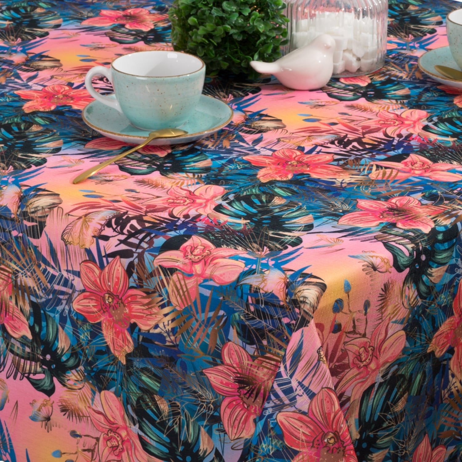 Obrusy poliestrowe, plamoodporne Elbrus o wzorze kwiatowym.