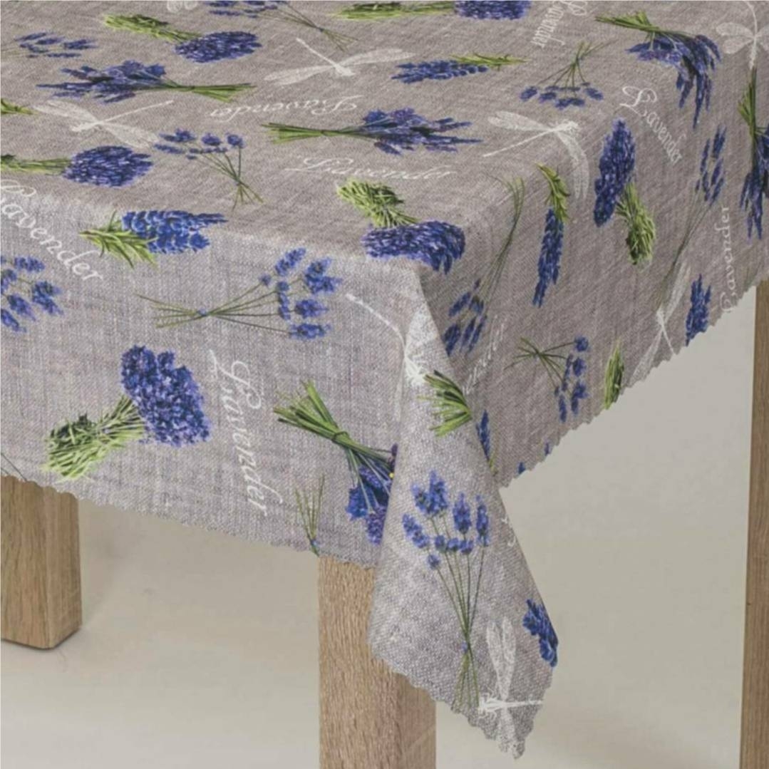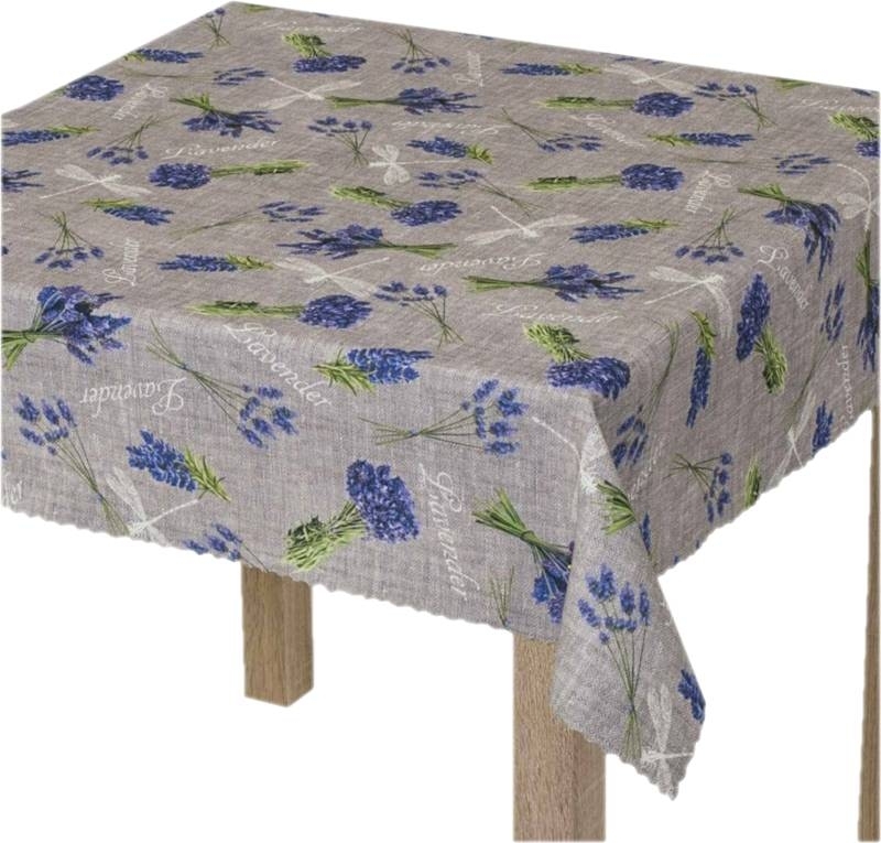Obrus plamoodporny Elbrus to obrus poliestrowy z nadrukiem bukietów lawendy.