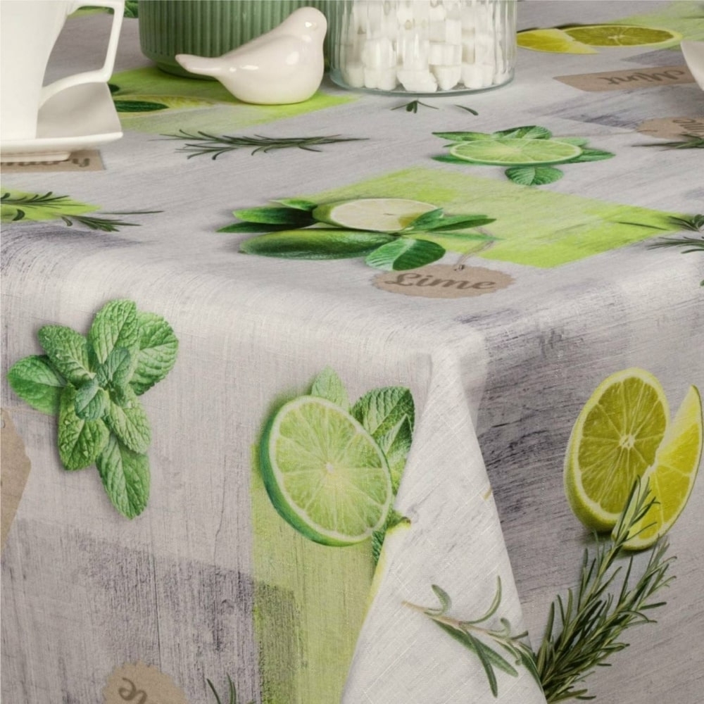 Obrus plamoodporny Minos DPN E11467-101 to piękny, gruby obrus w cytrynki.