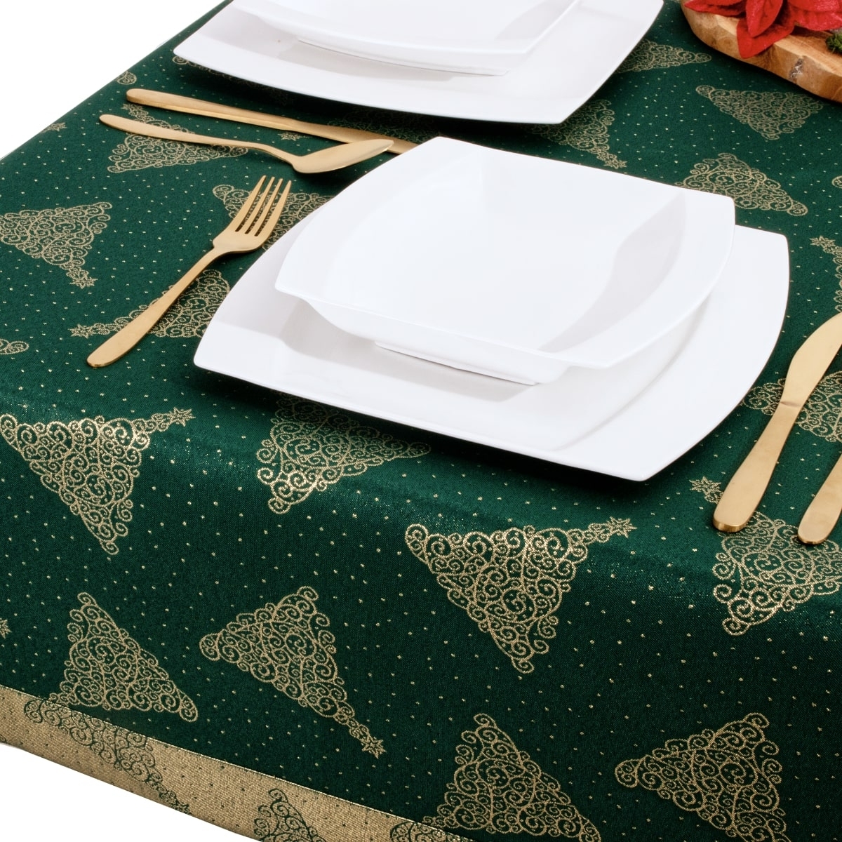 Świąteczny obrus bożonarodzeniowy 6348-3506 zielono-złoty choinki